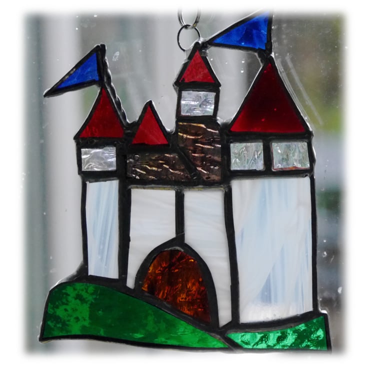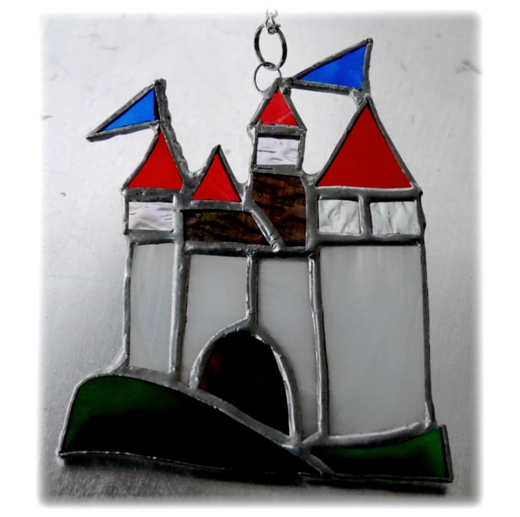 The castle is 12.5cm high and 9cm wide and hangs from a silvery chain securely attached via a soldered wire ring.