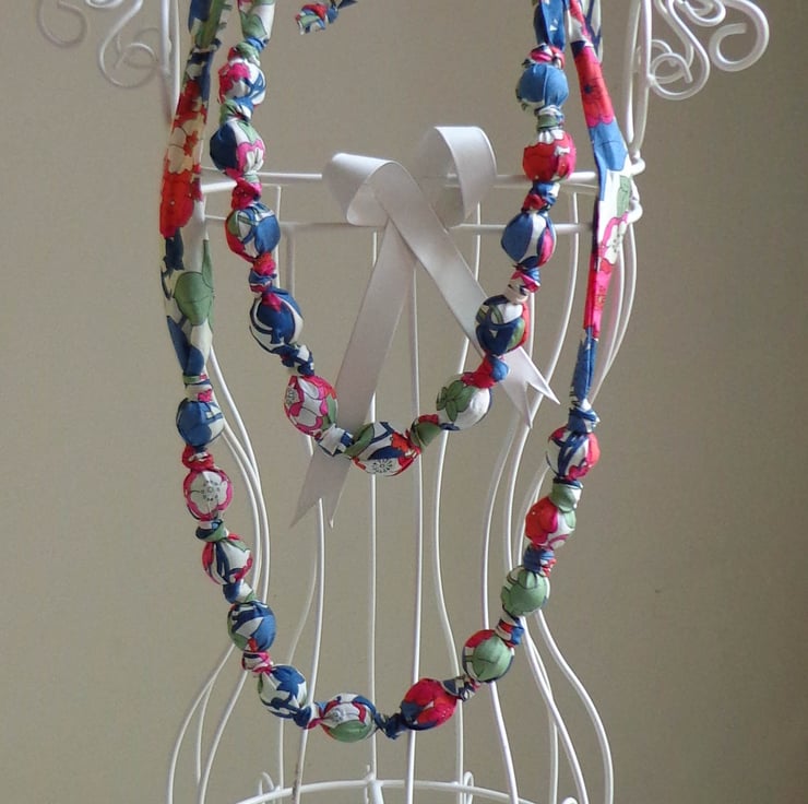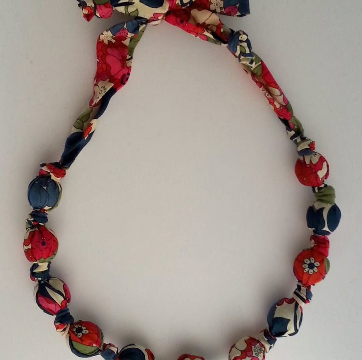 This Liberty print fabric necklace can be tied with a bow or a knot to vary the length from choker to mid chest. It is made out of Tana Lawn 100% cotton and so feels very soft next to your skin and has just the right weight to it to make it hang nicely.