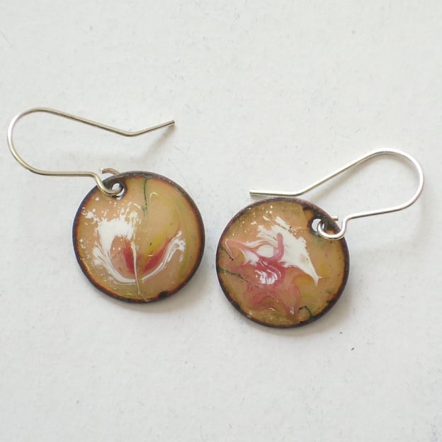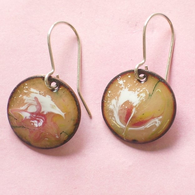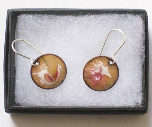 The drops are 13mm diameter and counter enamelled on the reverse. The wires are silver.
