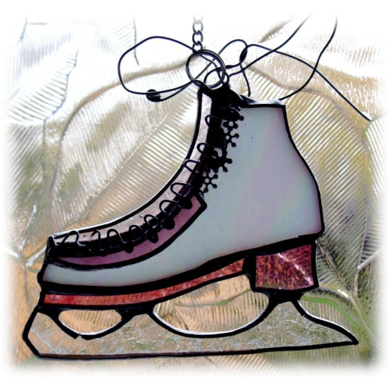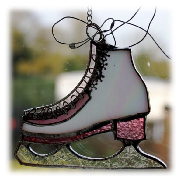 The body of the boot is in iridescent white glass which has a light pink shimmer and with the front lacing and the sole picked out in pretty pink.