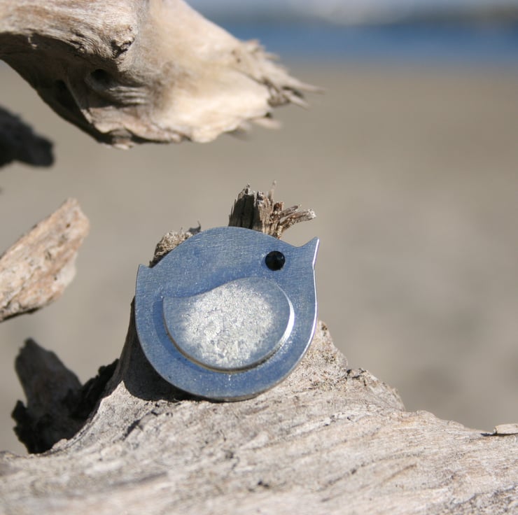 I cast my brooches using wooden moulds so the fine grain of the wood can be seen in the finished brooch, and sometimes even a light feathering like frost on a cold window.