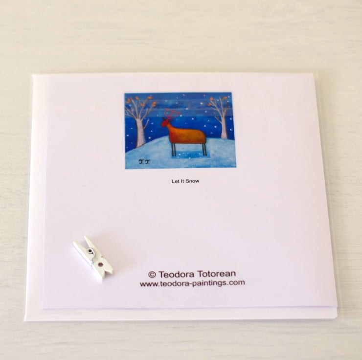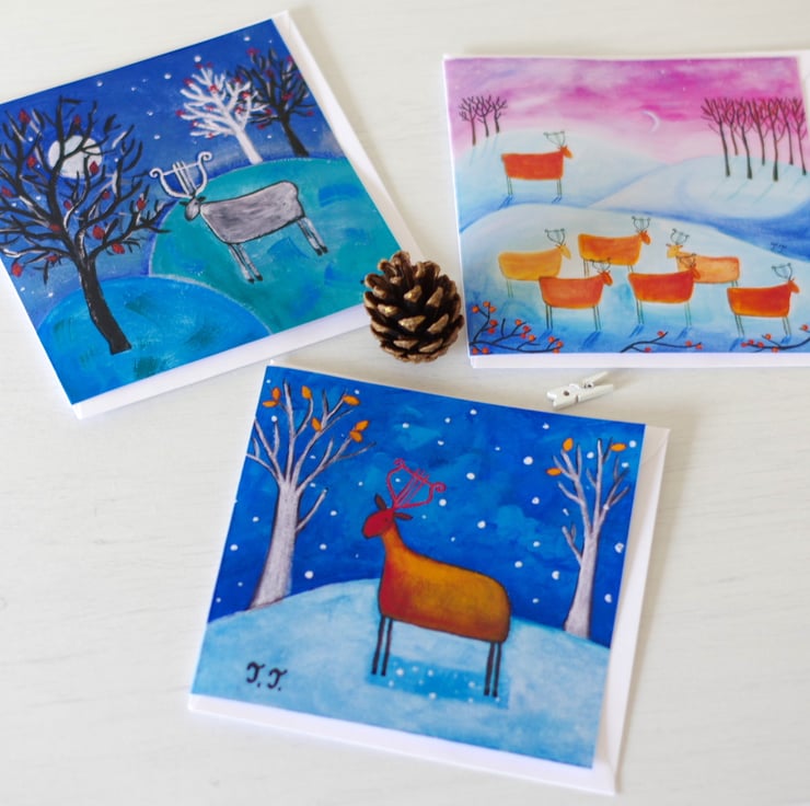 A set of three winter cards perfect for Christmas or other occasions. The images are prints after my original paintings and the cards are printed at home on 270 GSM card. They come with white envelops and protected in cellophane bags.