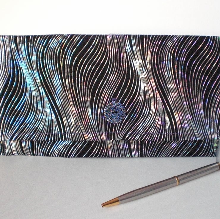 This is a lovely clutch bag made in a beautiful multi coloured foil effect fabric.