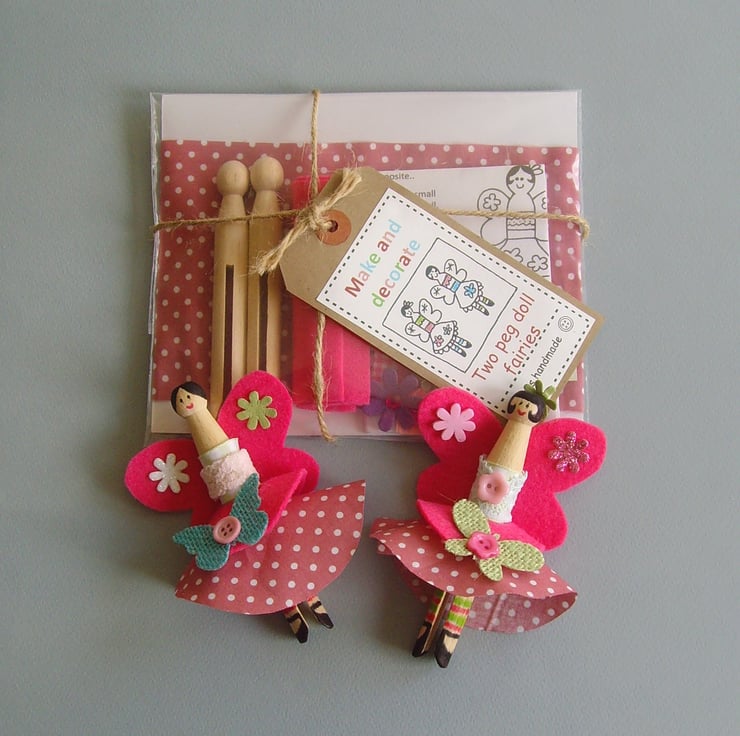 Make your own fairy peg dolls with this lovely craft kit. These are ideal for a birthday party, party favours, stocking fillers or just for a rainy day.