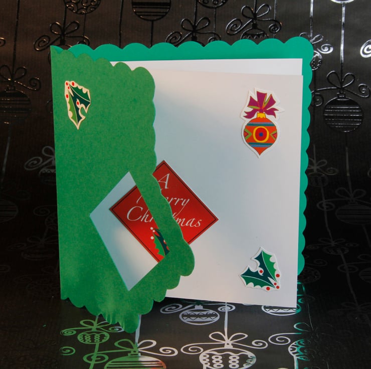 6in x 6in green pierced, short fold, 8 page christmas card made from 300 gram and 160 gram