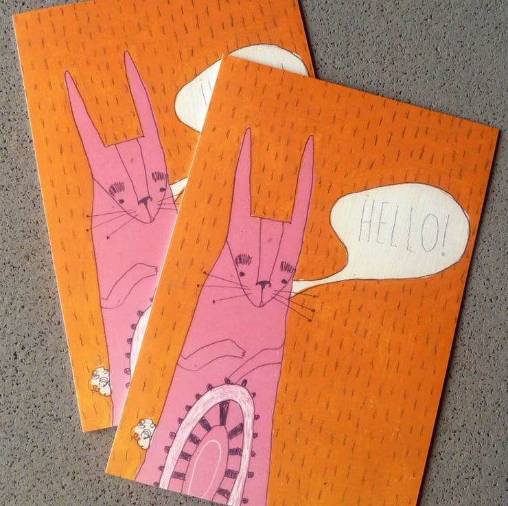 This listing is for one of these lovely illustrated cards. The card is approximately 6x4 and comes with a white envelope, protected in a plastic sleeve. The card features a print of a Twinkle and Gloom illustration. This particular illustration features a Raspberry Rabbit.