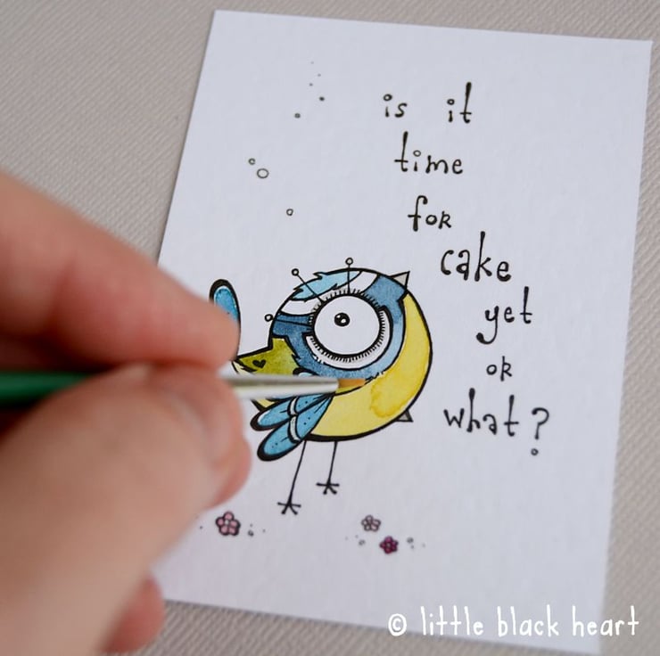 original artwork in artists pens and watercolour paints, on textured white 300gsm cardstock. drawn with a tiny 0.05 nibbed pen, and carefully painted with just the very tip of a tiny paintbrush!
