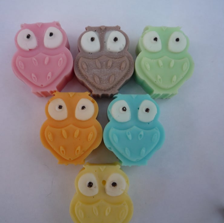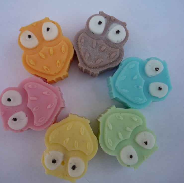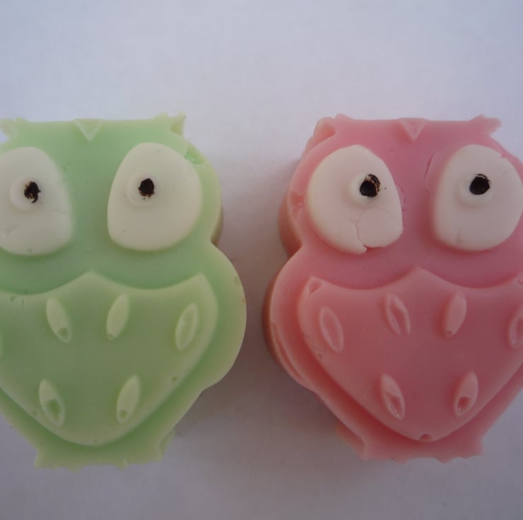 cute little owl shaped soap, made with goatsmilk, and in comes in assorted colours and fragrances.