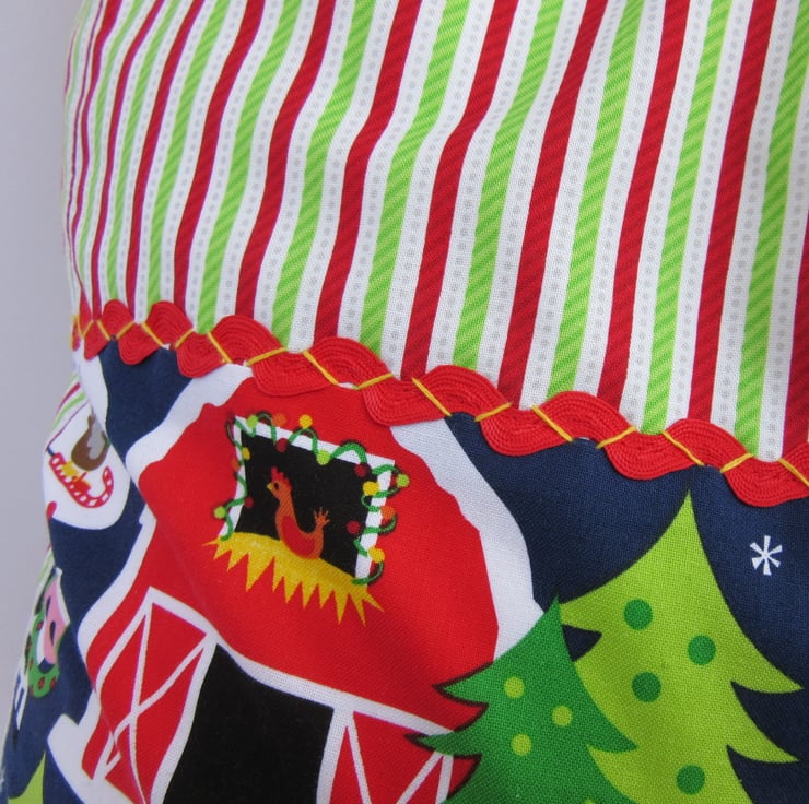 Care: Gentle handwashing and natural drying recommended. Medium hot iron - cover ric-rac, felt, pom poms before ironing (a sheet is perfect).