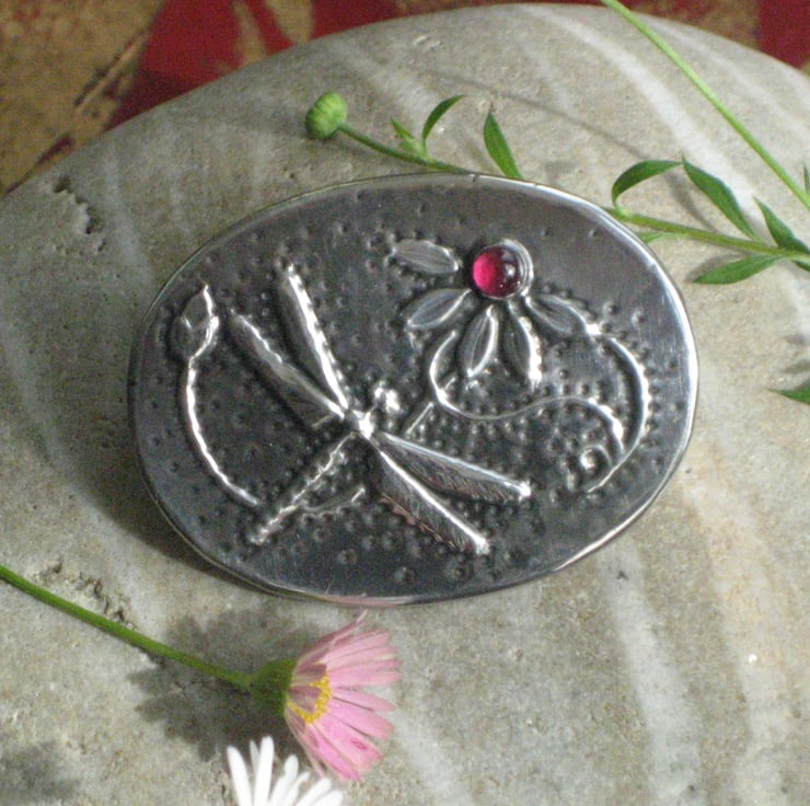 This brooch has been hand-made in lead-free pewter and features a lovely genuine garnet cabochon. It measures 45 x 34mm. It has a 30mm pin with safety catch on the reverse, and comes in an attractive gift box ( may differ from that shown ). A lovely gift for Mothers' Day, a 10th Wedding Anniversary, Birthday or Christmas.