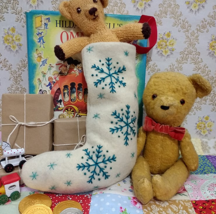 Made from a beautiful soft and warm vintage cream Witney blanket this sweet little stocking is perfect for a simple celebration, it's also an ideal gift for lovers of the vintage aesthetic.