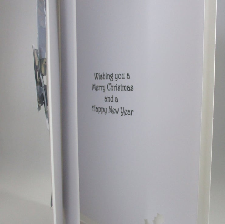 Insert is white with a holly leaf punched in corner and there is a christmas greeting.