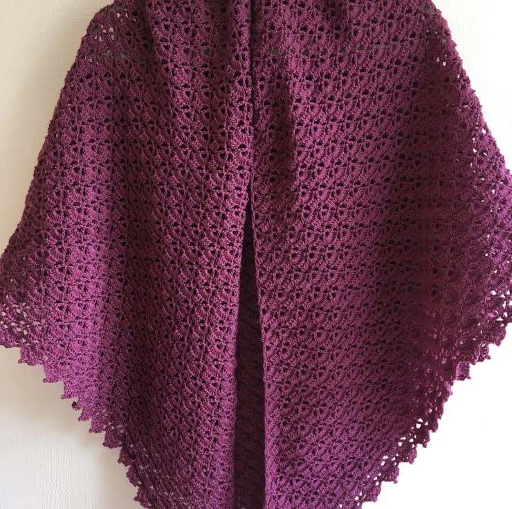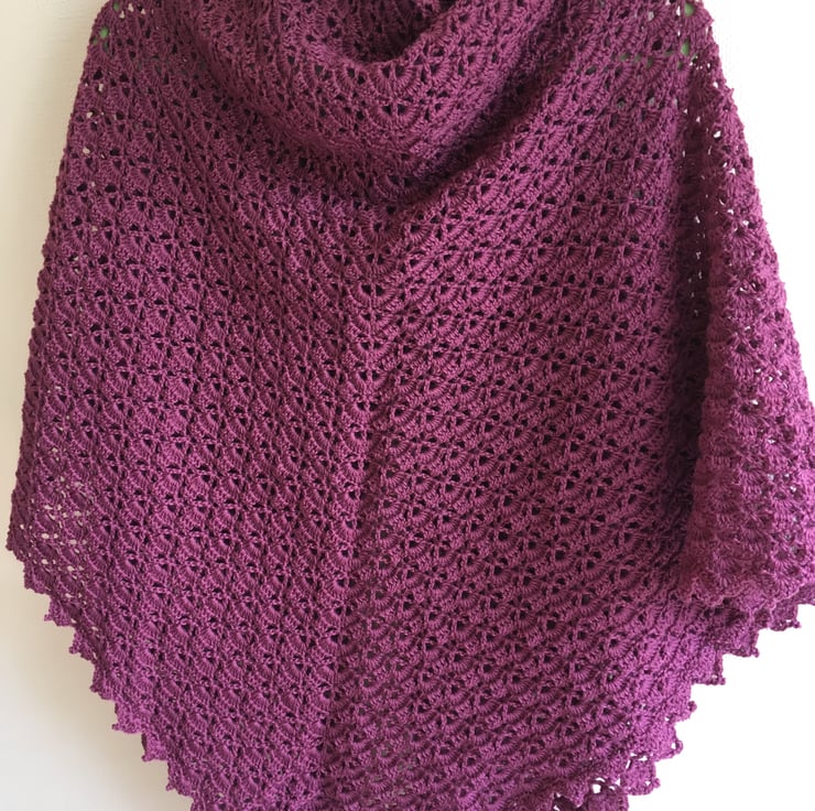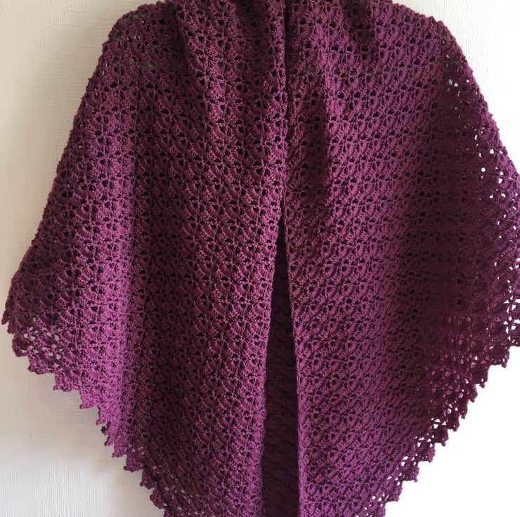 I made this triangular shawl in thin 4 Ply 100 per cent wool bought from a farm in Yorkshire and enjoyed it so much I bought another wool lot and made it again.