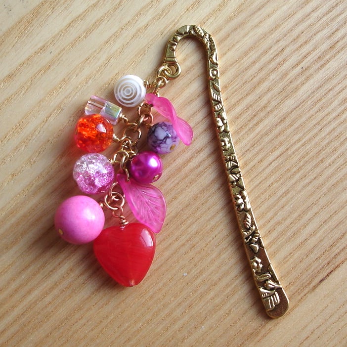 This uber-funky, very chic and unique bookmark features a wonderful cluster of pink beads on gold plated pins. The stem piece sits between the pages of your book and the beads dangle down your book's spine. A stand out piece which is perfect for any bookworm and will really prompt conversation.