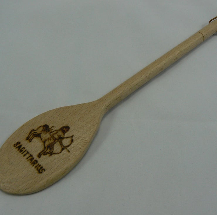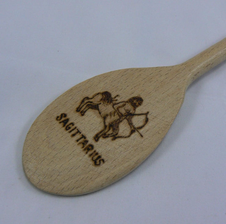 This wooden spoon features a star sign that I have burnt into the wood (Pyrographed) and I have added a leather cord,