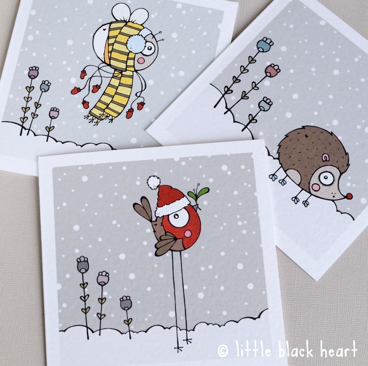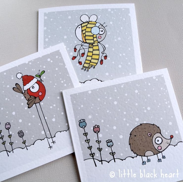 this listing is for a pack of 3 christmas cards, one each of my 'british wildlife' designs: