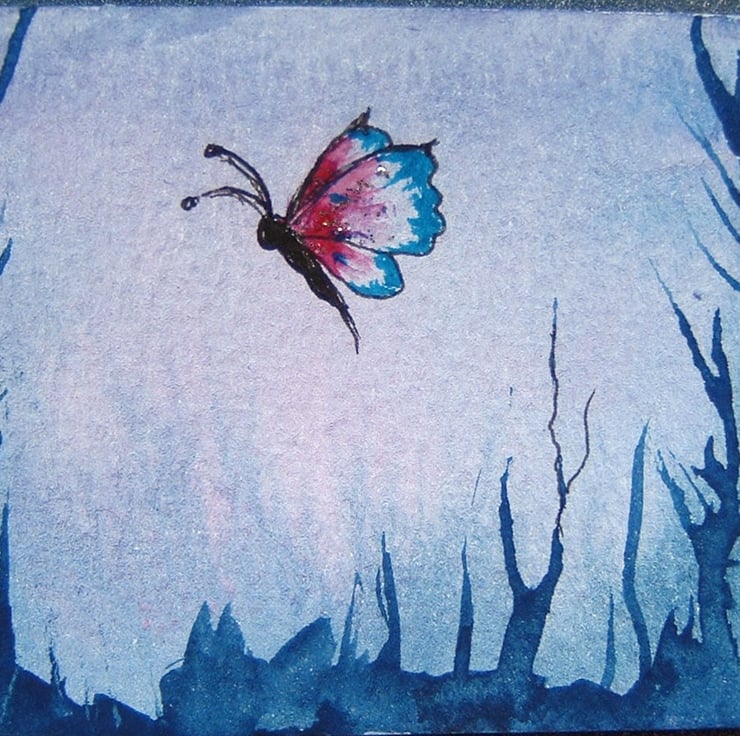 this is an original painting that has been created using quality materials. It will come in a clear polybag to protect it. This is an original and not a print. An aceo is a miniature painting that measures just 2.5" x 3.5" and is highly collectable. It can be framed of displayed in a photo album. This painting contains glitter....