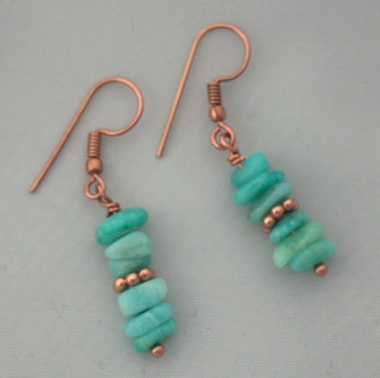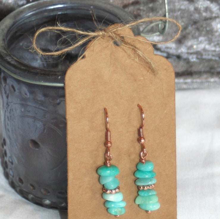 Semi-precious amazonite nuggets with rose gold plated daisy spacer beads and matching ear wires.