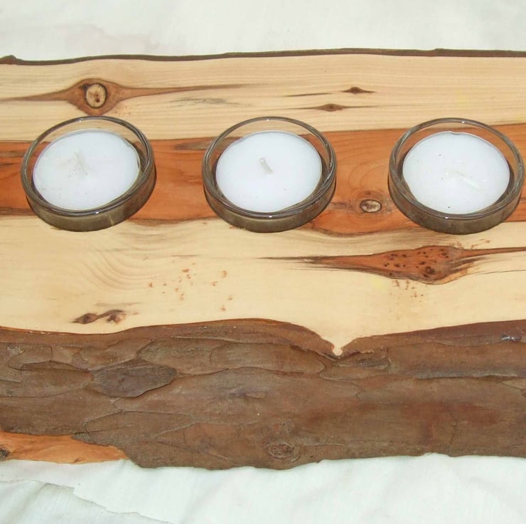 Each one is a one off made from yew finished with water based acrylic lacquer and waxed polished this is natures art work, they come complete with glass holders and tea lights.