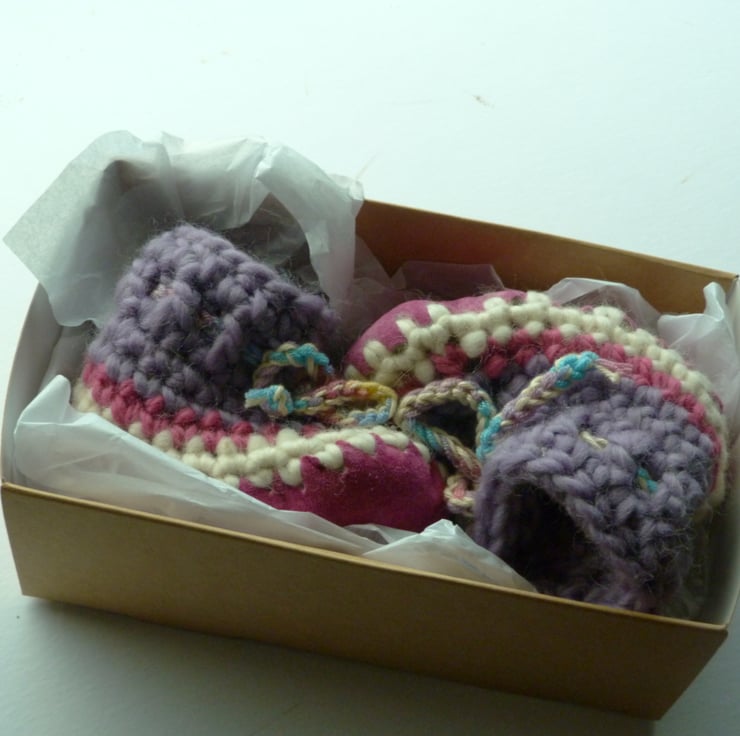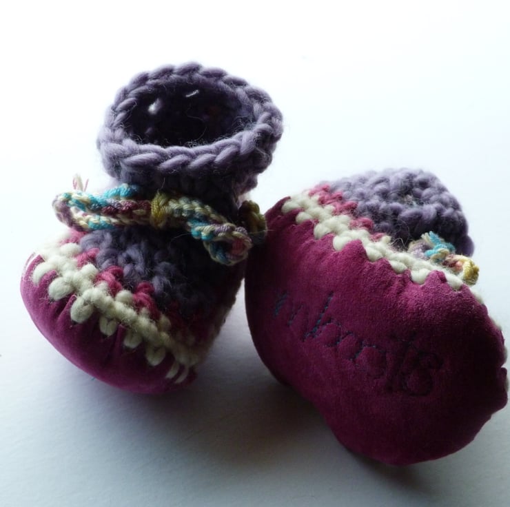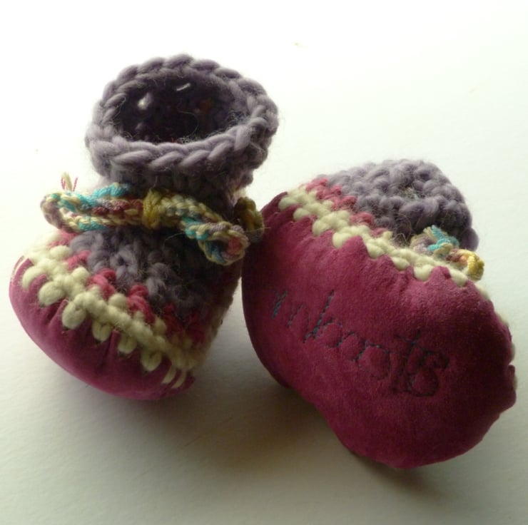 These funky little boots will keep your baby's feet snug and warm and add a dash of colour to any outfit. Warm woollen fabric with stretch for comfort and growing room plus a soft suede non-slip sole. A perfect gift for a baby girl.