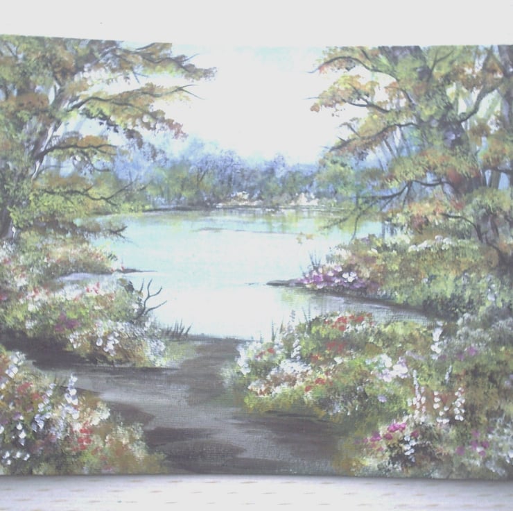The painting is on solid canvas board that measures approximately 9" x 12". It is unmounted and unframed.