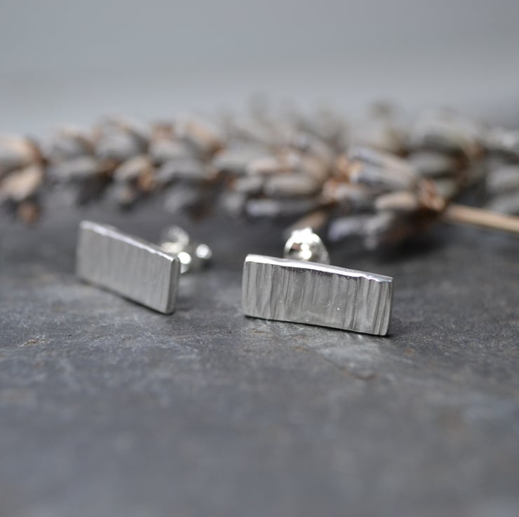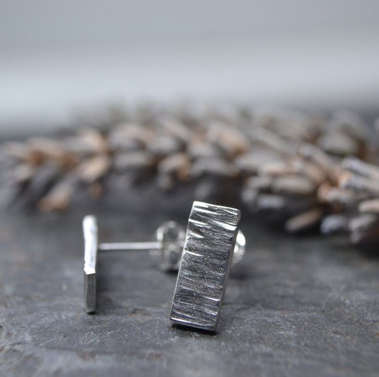 Beautiful shiny bark textured earrings, in a simple contemporary shape.