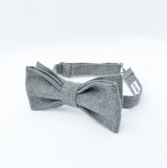 A superb mens accessory handmade from the finest British wool tweed fabric in grey. Unlike most pretied bows this tie features a double bow and gives a true impression of a one piece bow tie. A simple metal adjustable fastening makes it incredibly easy to fit and wear.