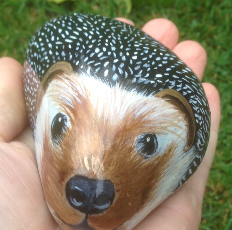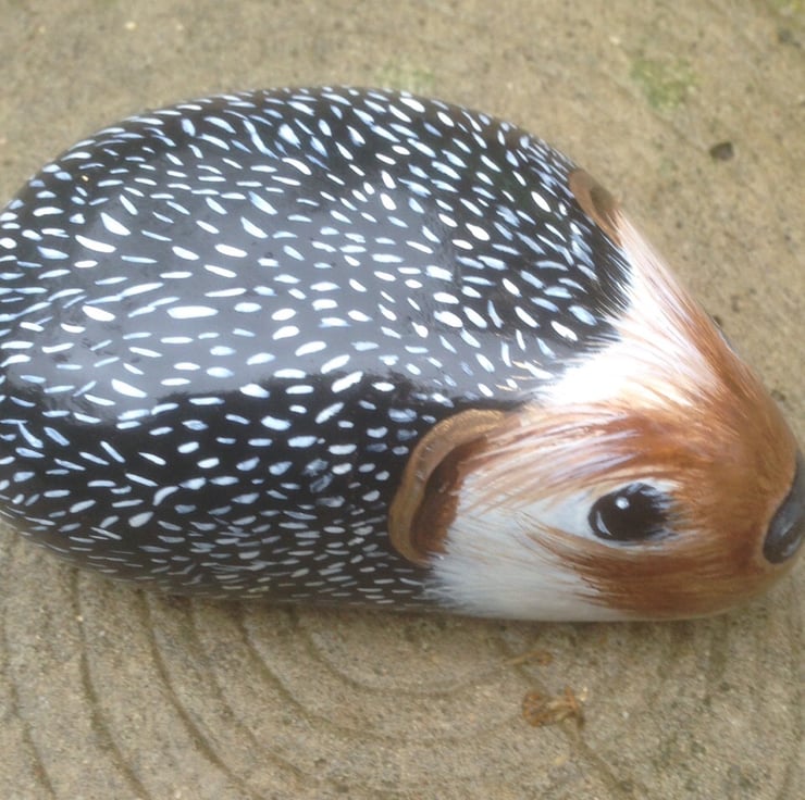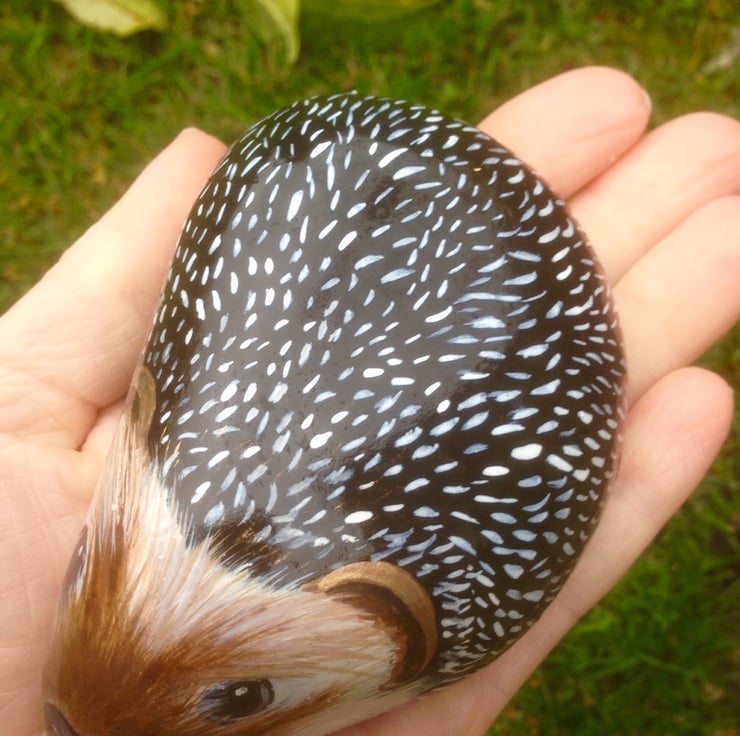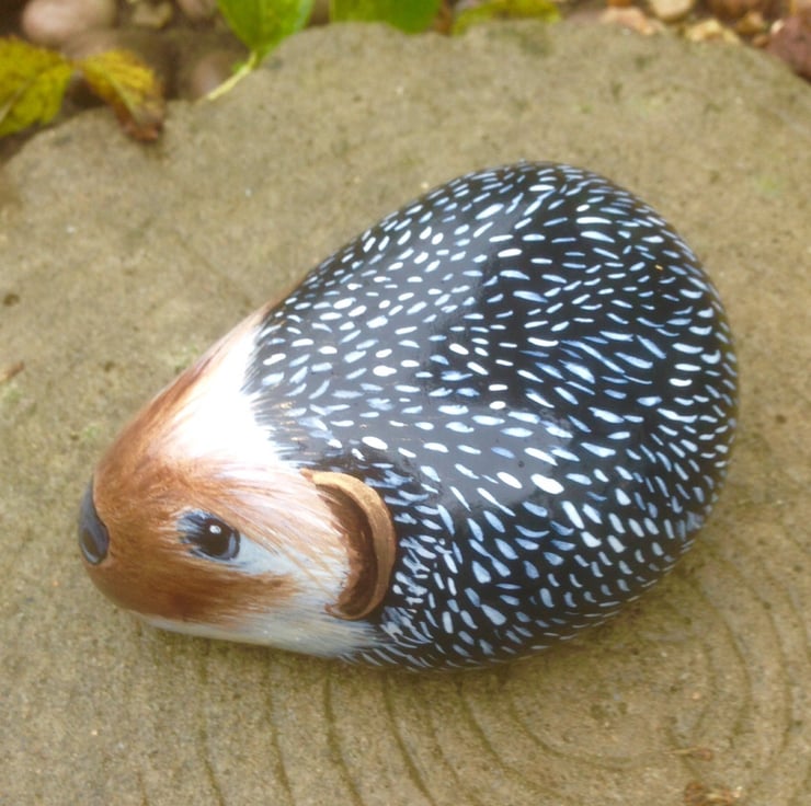 This hedgehog has been hand painted onto a smooth large stone and glazed for a glossy protective finish.