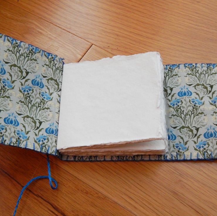 - Hand bound in Longstitch, with cobalt blue linen thread.