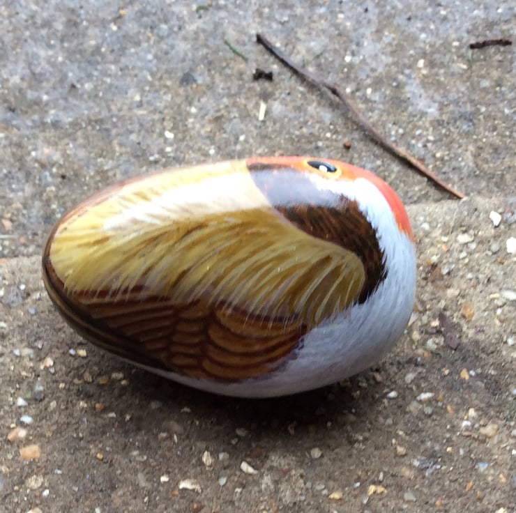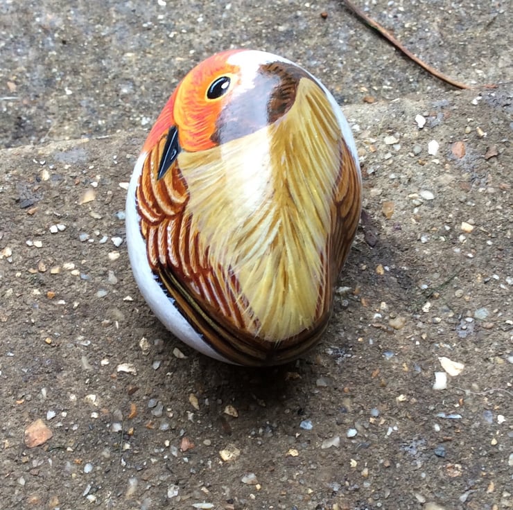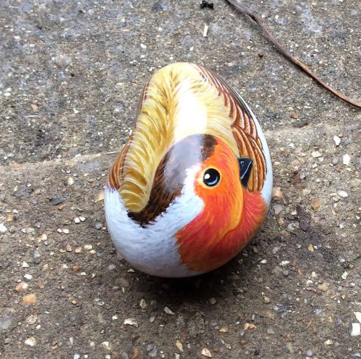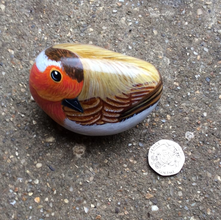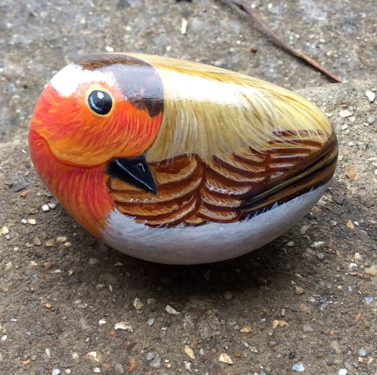 This little robin has been hand painted using acrylics onto a smooth shaped stone and glazed for a Glossy protective finish