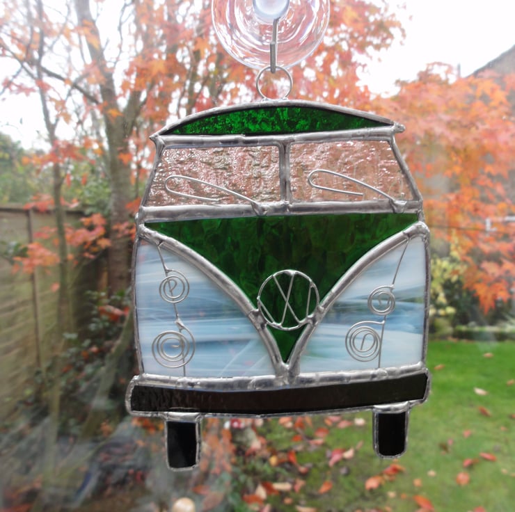 Here is a great Camper Van suncatcher made out of beautiful stained glass - idea for any camper van owner.