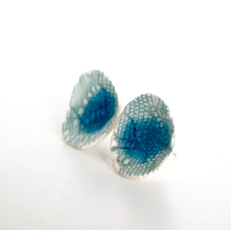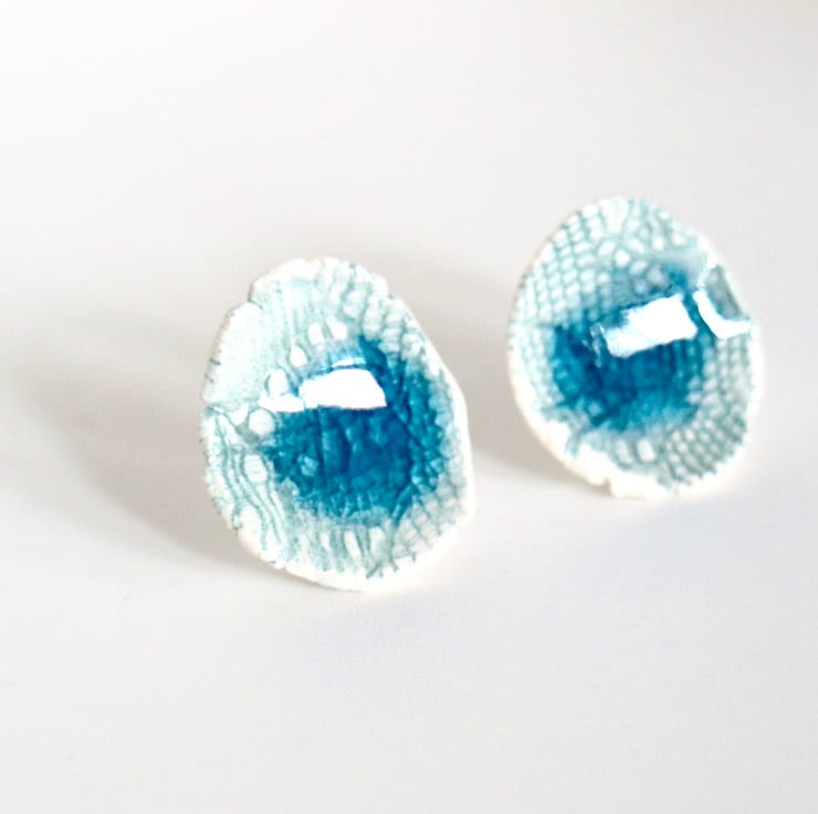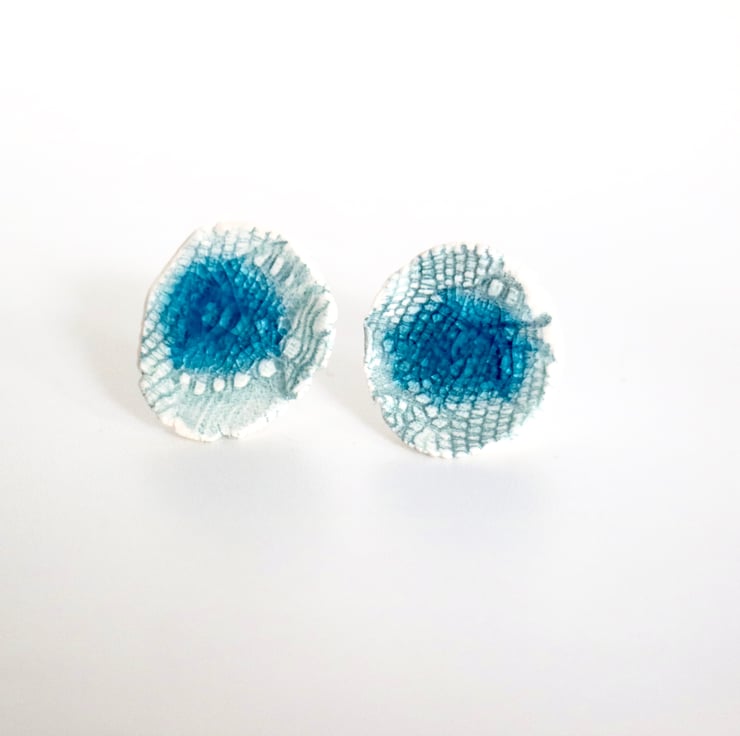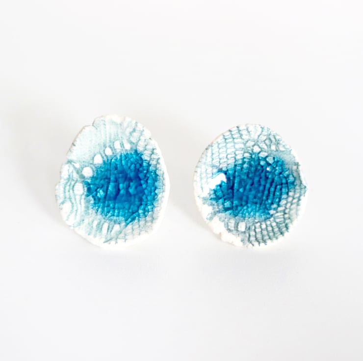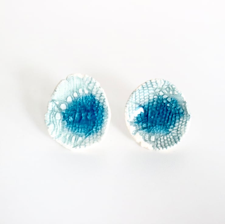 The porcelain disc is 2x1.8cm and sits on a silver plated stud backing.