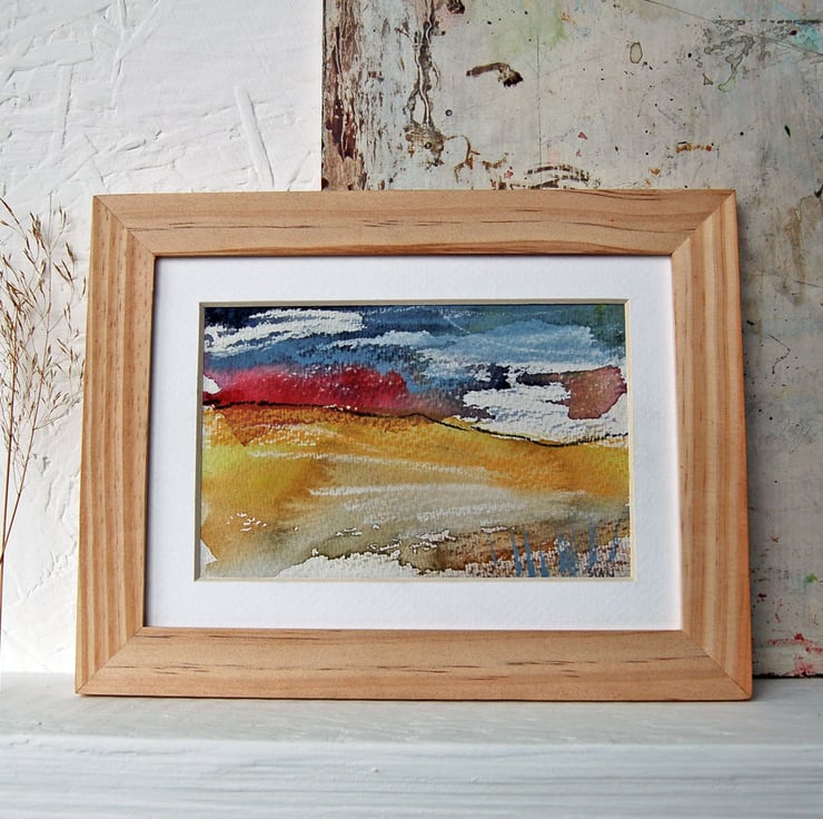 This is an unframed original gouache (opaque watercolour) and conte crayon painting of an colourful autumnal British countryside moorland landscape. My art makes a great gift idea for people who love walking, hiking, countryside and the outdoors.