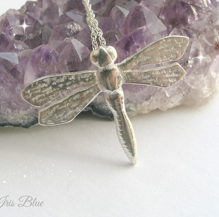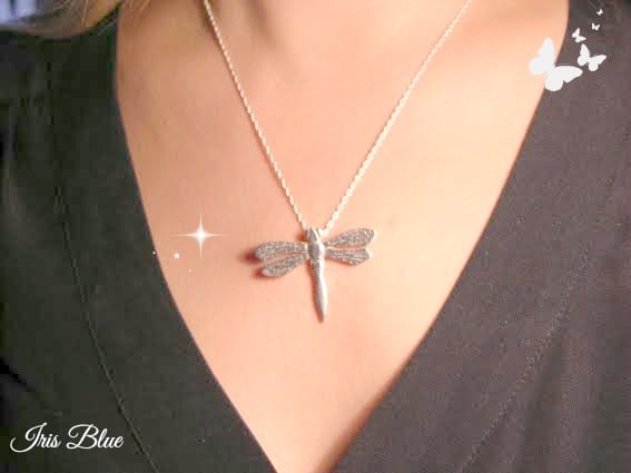 Dragonfly Necklace. This is a stunning necklace hand made by Iris Blue in Sterling Silver.