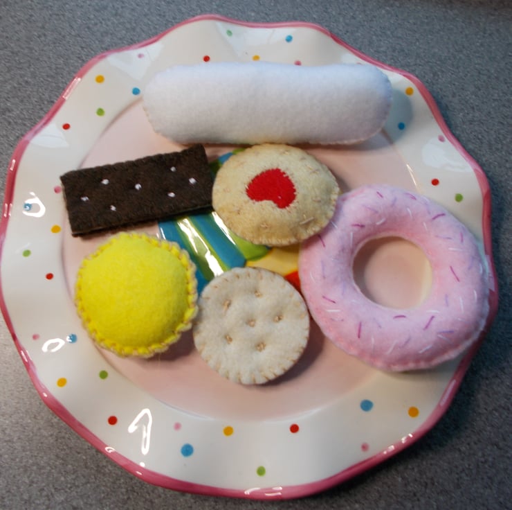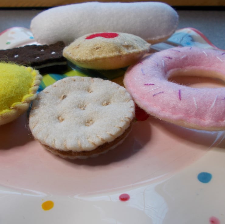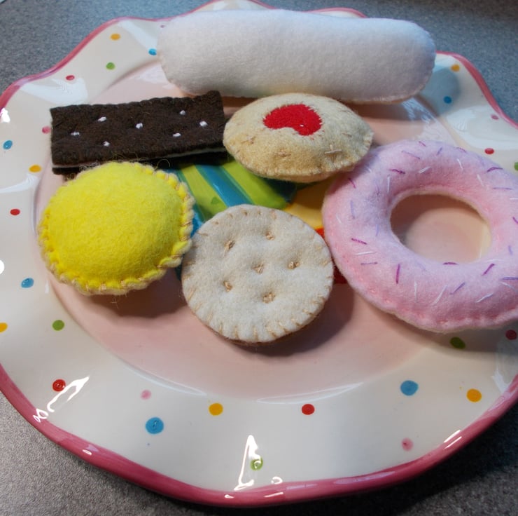 1 Bourbon Biscuit, 1 Jammie Dodger, 1 Iced Bun, 1 Ring Donut, 1 Jam Tart,