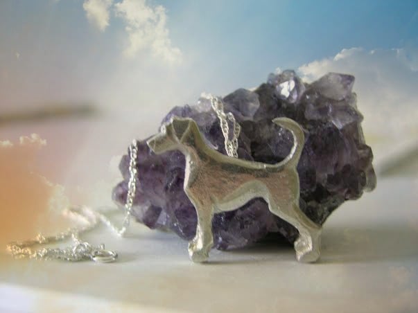 Solid Sterling Silver, hand made and hand finished to a very high standard. Each pendant is individidually made, these are not mass produced and take several hours of Craftsmanship to bring this wonderful breed to life in silver! He is approx 2 inches across by 1 1/2 inches deep.