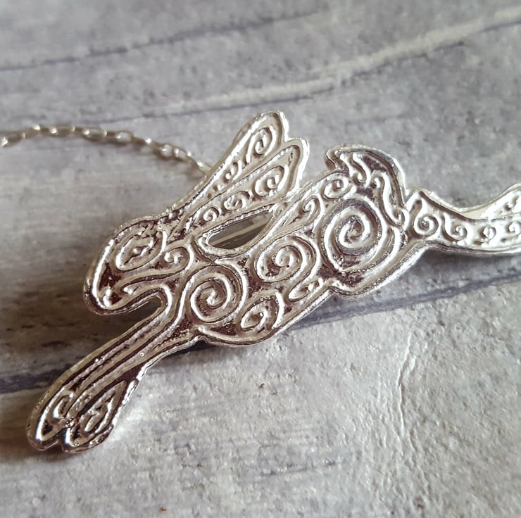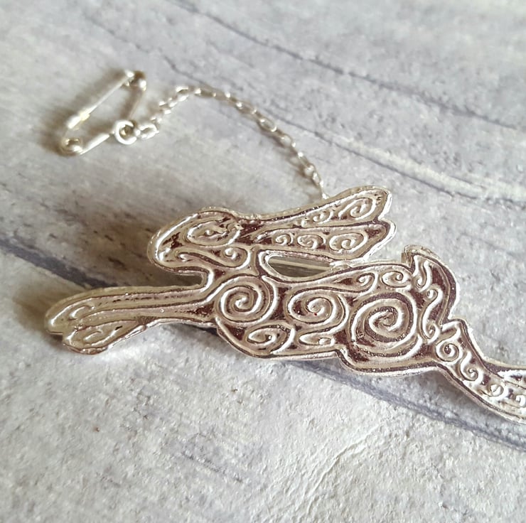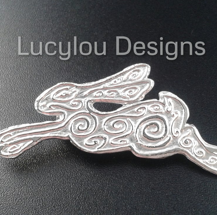 Andromeda is another of my leaping hare designs transformed into a stunning silver brooch. She was etched into silver sheet using one of my original leaping hare designs using a process of acid etching.