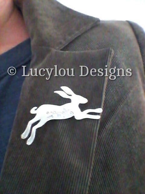 A collaboration between 2 hare-mad creatives has resulted in this magical silver hare brooch.