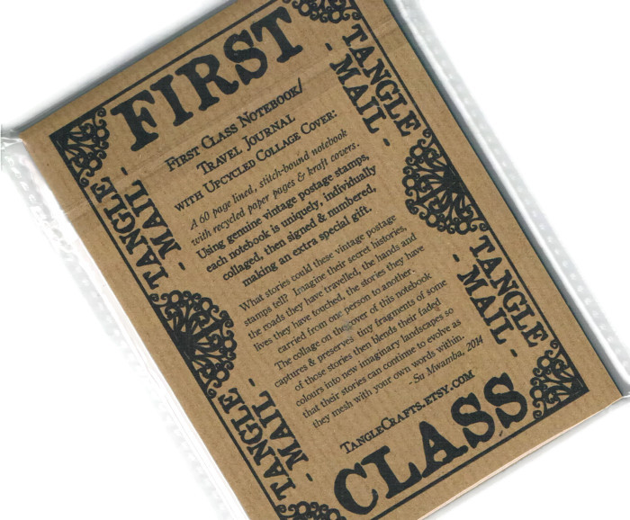 The back cover is left blank, except for a hand-stamped TangleMail maker's mark which will be numbered & signed. This notebook will be numbered 3 as it is the 3rd in my new Cuban Collection (different notebook reverse shown in pic). There is also an insert (pic 4) providing some background info about my collages - great for gift-giving!