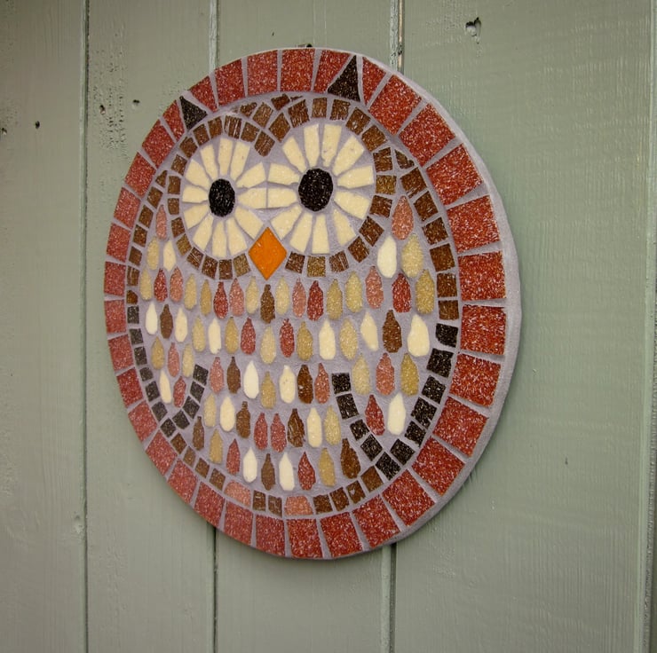 This mosaic tawny owl makes a great garden decoration for a fence, wall, or even a shed door. It would also make a great gift for any garden or wildlife lover.