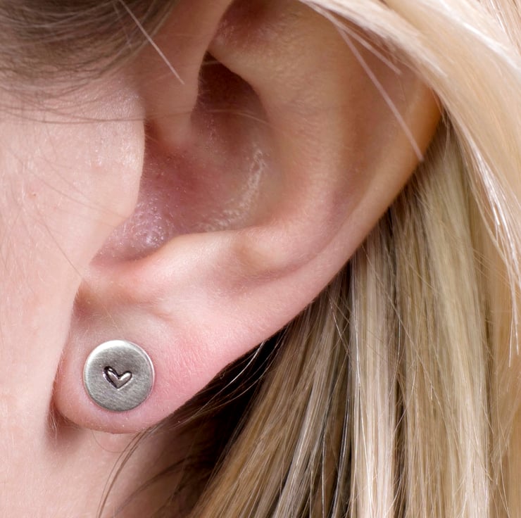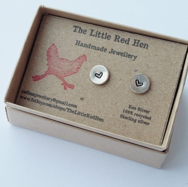 Cute little recycled silver stud earrings, stamped with a little love heart, a perfect Valentine's Day gift.