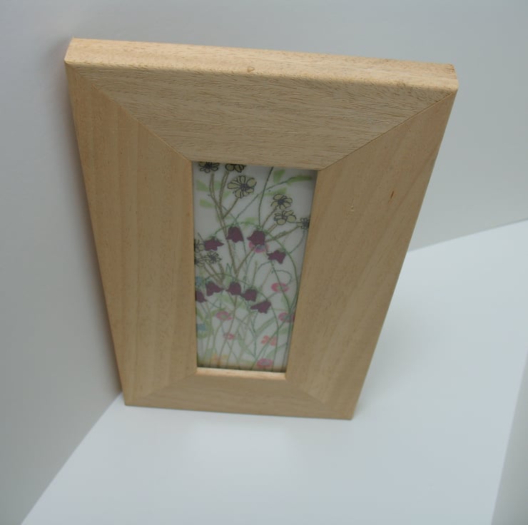 A mixed media 'Flower Meadow' artwork framed in a contemporary pine frame.