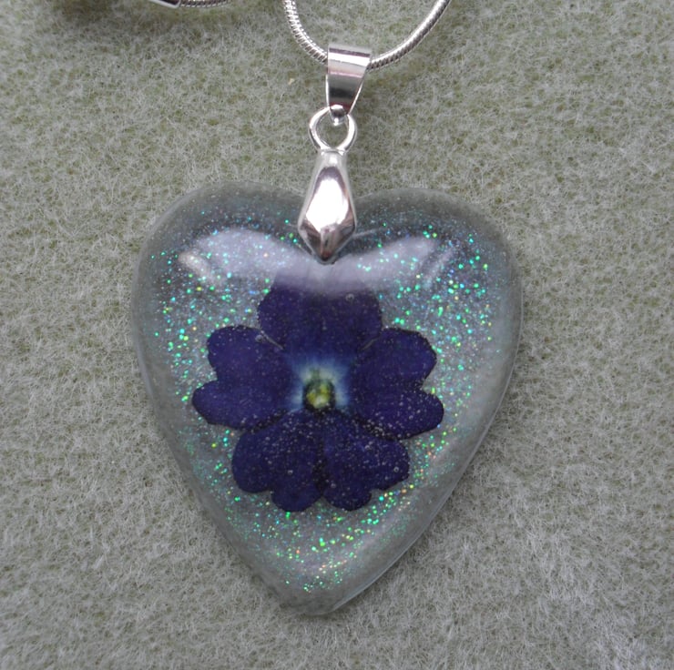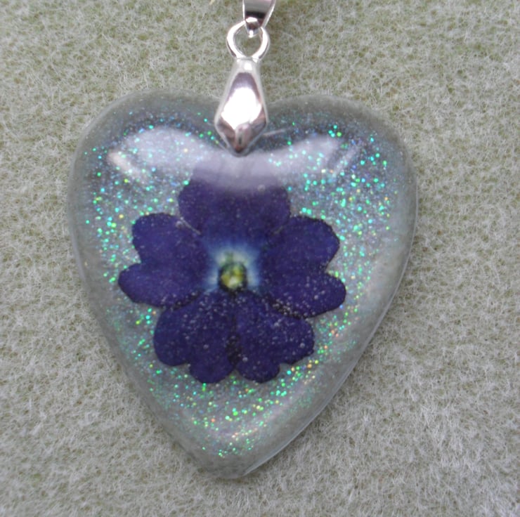 Lovely verbena flower set into resin which has had some glitter added to give a little sparkle.