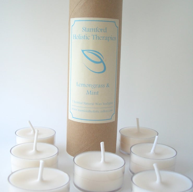 Hand poured aromatherapy tealights packaged in a cardboard tube. Each tube contains seven tealights.