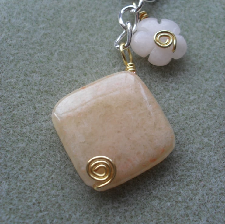 Honey quartz approx. 3 cm with a quartzite flower bead are attached to a four leaf clover strong split ring.