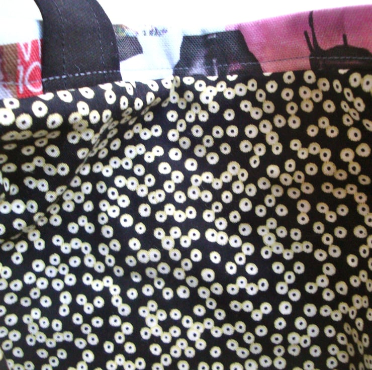 Fully lined in a black and white cotton fabric , this bag will make a lovely gift.