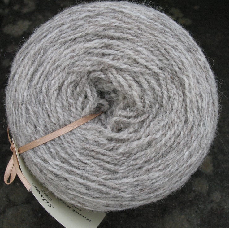 A unique blend of white and dark brown fleece in a 7 to 1 ratio. Undyed. 100g ball, approx 280 metres (300 yards). Hand wash at low temperature. If you would like a free sample card of all the colours in this range, please send a stamped addressed envelope to Tavistock Tastes and Textures, Tor Grove Farm, Rix Hill, Tavistock PL19 9EQ.