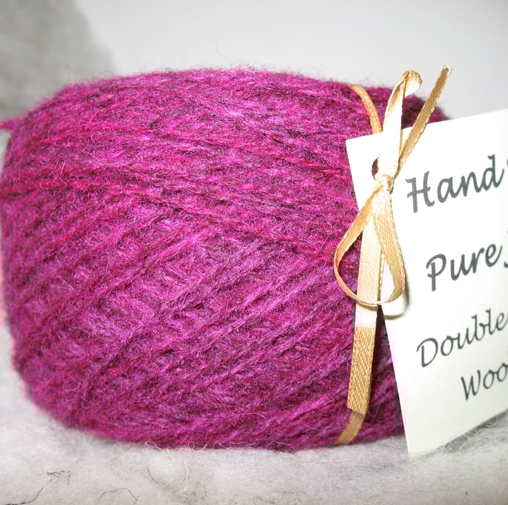 Produced from the fleeces of our small pedigree flock of Jacob Sheep, spun by the Natural Fibre Company in Launceston and hand dyed on our farm.