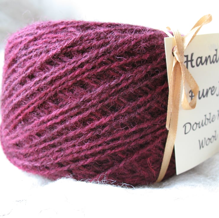 A blend of white and dark brown fleece in a 1 to 1 ratio overdyed Plum. 100g ball, approx 280 metres (300 yards). Hand wash separately at low temperature. A joy to knit and very warm. If you would like a free sample card of all the colours in this range, please send a stamped addressed envelope to Tavistock Tastes and Textures, Tor Grove Farm, Rix Hill, Tavistock PL19 9EQ.