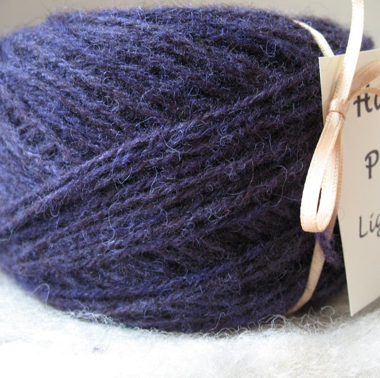 A blend of white and dark brown fleece in a 1 to 1 ratio overdyed Clematis. 100g ball, approx 200 metres. Hand wash separately at low temperature. A joy to knit and very warm. If you would like a free sample card of all the colours in this range, please send a stamped addressed envelope to Tavistock Tastes and Textures, Tor Grove Farm, Rix Hill, Tavistock PL19 9EQ.